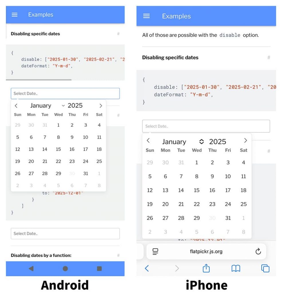 公式の最終更新が2022年で注意が必要ですが、ブラウザごとの挙動に振り回されるよりも、flatpickrのようなライブラリを活用することで、ユーザーにも開発者にも優しいUIを実現できます。
